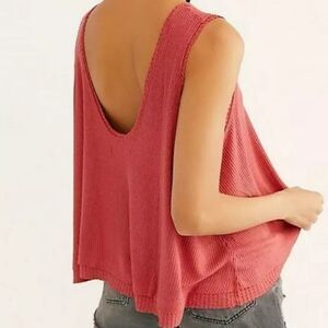 Free People New Love Tank Top In Flor de Mayo Rusty Red/Orange Sleeveless Ribbed