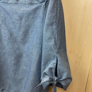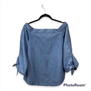 Free People Off the Shoulder Top in Chambray, size S - EUC. Shoulder opening is elasticized. Please see photos for approximate measurements