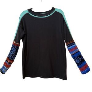 Free People On My Way Cuffed Black Mixed Weave Top Sz S, Boho, Lagenlook