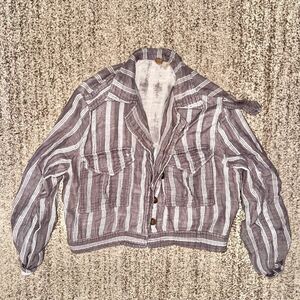 Free People One Officer Jacket Striped Canvas Collared Jacket in Brown Size XS