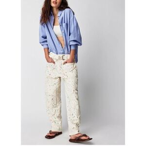 Free People Painter Pants in Ecry Utility Paint Splatter US 2 NEW