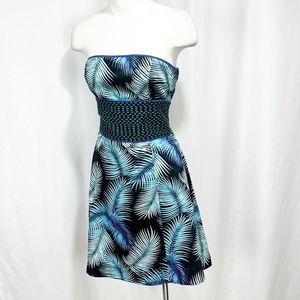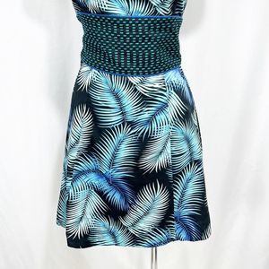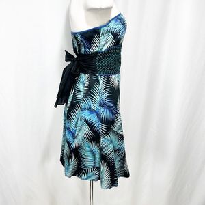 Free People Palm Tree Smocked Tie Back Dress Embroidered Black Aqua 8