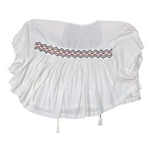 Free People Peasant Style Blouse Womens Sz L Embroidered Market Tee Boho Hippie