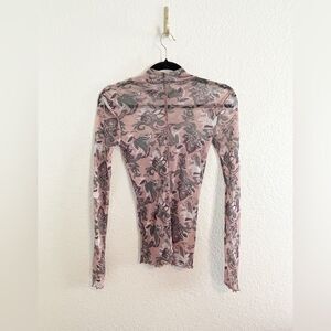 Free People Pink Pukka Mesh Long Sleeve Print Mock Neck layering Top small