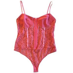Free People Pink Sheer Sweetheart Neck Lace Faux Corset Bodysuit NWT Size Large