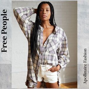 Free People Plaid Button-Down Shirt Tunic- Purple and Yellow Size Medium NWOT