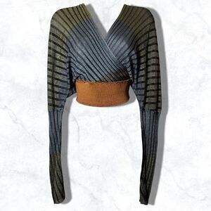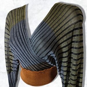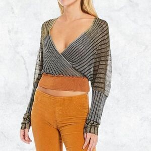 Free People Pluto Faux Wrap Deep V-Neck Long Sleeve Boho Blouse;