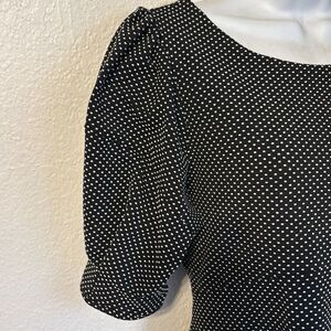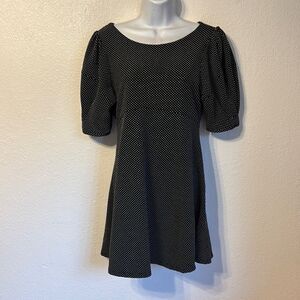 Black and white micro polka dot mini dress from Free People. Puff sleeves. Keyhole back. Size small.