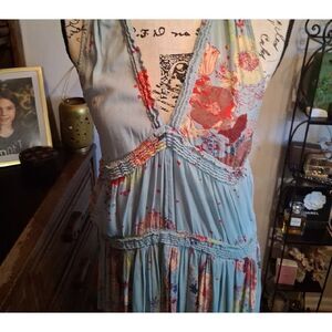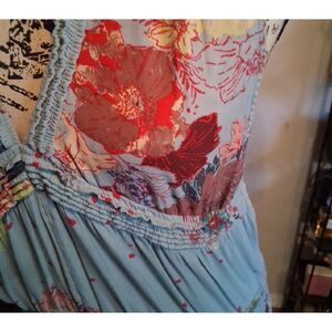 Free People Purple Haze Light Blue Floral Halter Tunic Top /Mini Dress Small