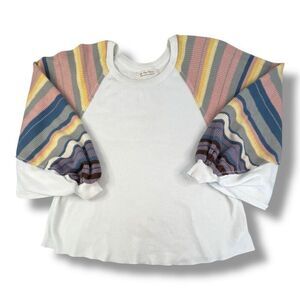 Free People Rainbow Dreams Oversized Slouchy Thermal Top Size Medium
