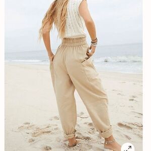 Free People Ready To Run Cinch Waist Pants Trousers In Parchment Size Small Flawed