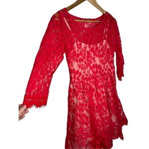 Free People Red Floral Mesh Lace Dress Valentine Size 2