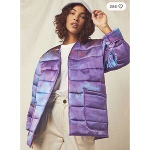 Free People Riverside Tool and Dye Major Silk Quilted Jacket 100% Silk Purple