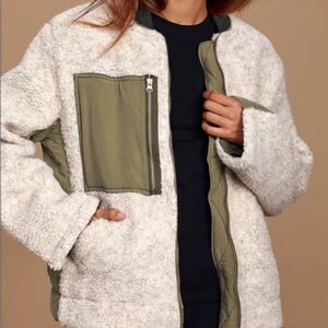Free People Rivington Sherpa Jacket In Olive Green & Ivory