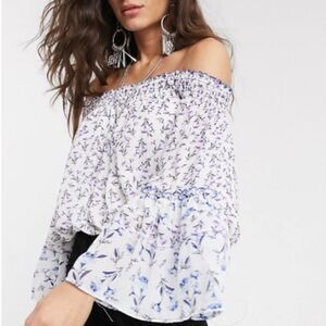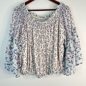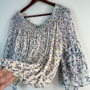 Item: Free People Rose Valley Off the Shoulder Top Womens Medium Smocked Bell Sleeves