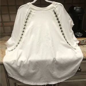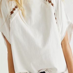 Free People Rough Around The Edges Top Crochet Ring Detailing Ivory White