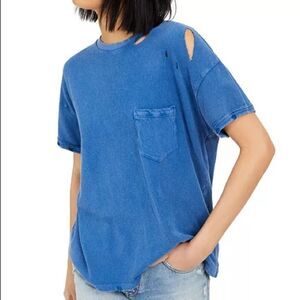 Free People Rubi Ripped T-Shirt Belle Blue Various Sizes