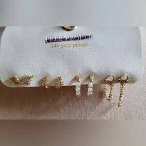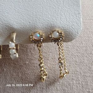 14k gold plated pierced earrings - set of four embellished with crystals and opal like stones NWT