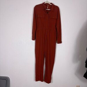 Free People Set The Tone Burnt Red Eyelet Long Sleeve Pants Jumpsuit Size 6