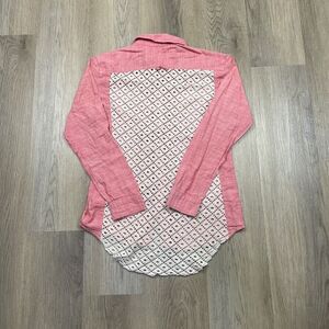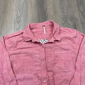 Free People Shirt Womens Small Pink Button Down Lace Back Boho Casual Top Blouse