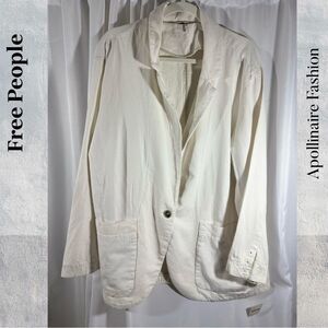 Free People Linen Blend Blazer Size Large. In NWT condition! Color is cream, natural, stone. Easy and lightweight. Perfect for spring and summer!