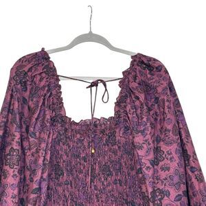 Free People Smock it to Me Floral Puff Sleeve Smocked Dress | S