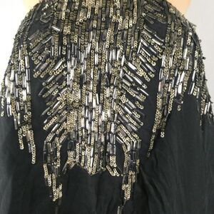 Hand washable viscose/cotton, lined. Covered in bronze tone sequins/beads. Size XS.