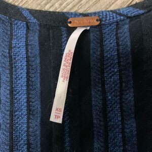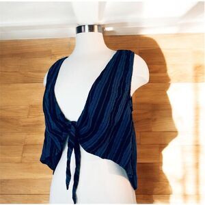 Free People Stripe Blue Black Linen Top Front Tie Vest XS Boho