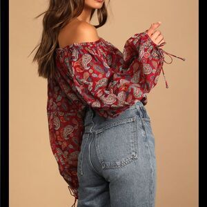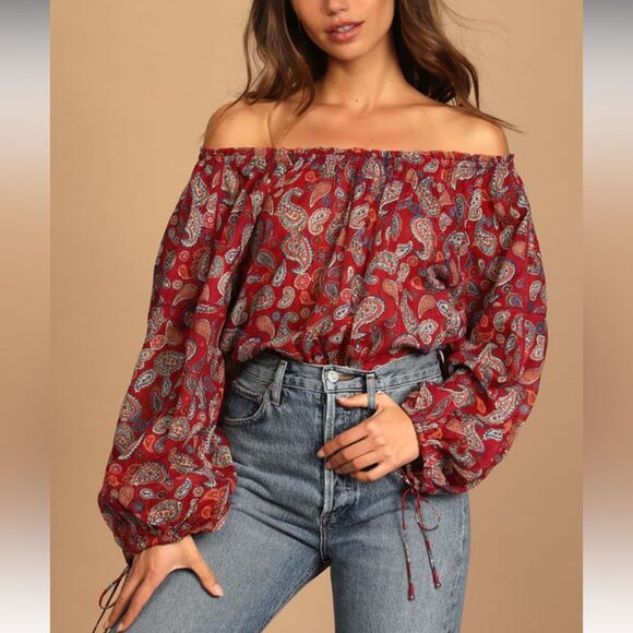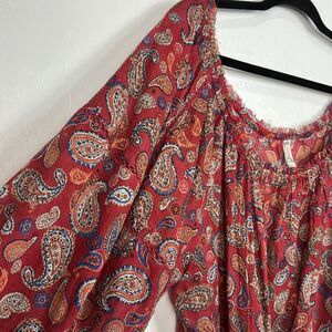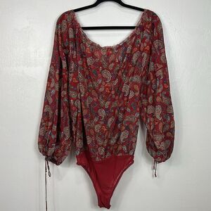Free People Sundown Rust Red Paisley Print Off-the-Shoulder Bodysuit Size M