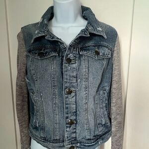 Jean jacket with Gray Knit sleeves