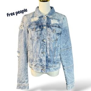 Free People Sweatshirt Knit Jean Distressed Streetwear Fall Jacket Size S