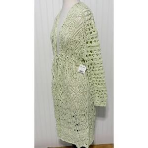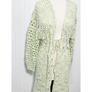 Free People Sweet Talker Long Crochet Cardigan Honeydew Green XS Extra Small