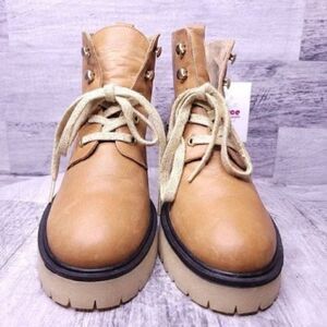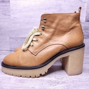 Free People Sydney Lug Sole Leather Hiking Boot Camel Brown Tan sz 40 Women's 10