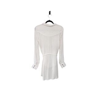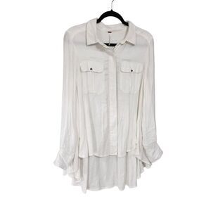 Free People white thin lightweight waffle weave oversized long sleeve top drawstring belted waist excellent condition 42" bust