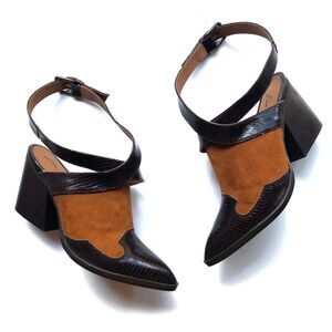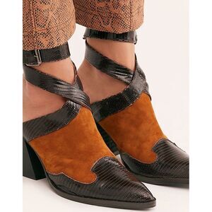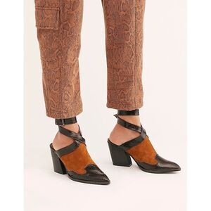 Walk this way in these Spanish-made, western-inspired mules featuring a leather and suede design with a wrapped ankle strap and stacked heel.