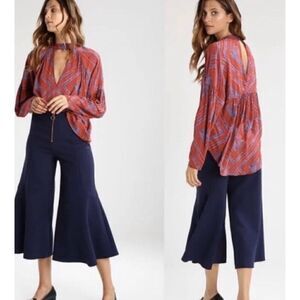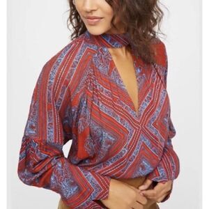 Free People Walking on a Dream Red Cut-Out Neck Tunic Top Sz XS EUC