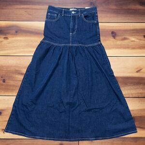 Free People We The Free Jordan Maxi Skirt Denim High Rise Stretch Dark Wash 0&6