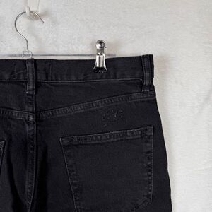 Free People We The Free Maggie Mid Rise Straight Cropped Jeans Washed Black Size 26. Excellent condition. See photos for details and unstretched measurements. Shop my closet and bundle multiple items for discounts and one shipping fee! Button Fly Ripped knees