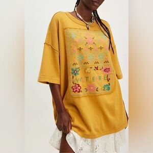 Free People We the Free Cross-Stitch Tee Marigold Combo NWOT
