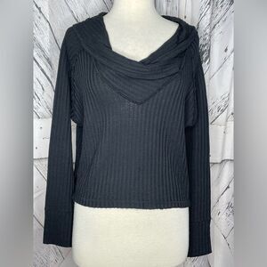 Free People Wildcat Cowl Neck Waffle Knit Thermal Pullover Sweater Black XS
