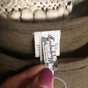 Intimately Free People All The Time Linen Bodysuit Army Green size Small. Heathered Army green. Sleeveless casual bodysuit. Crew neckline; raw-edge trim. 2-snap button at crotch