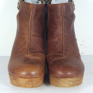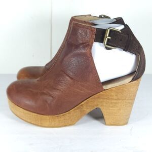 Free People Women's Amber Orchard US7,5 EU38 Brown Leather CutOut wooden heelsPlatform Clogs Shoes.