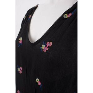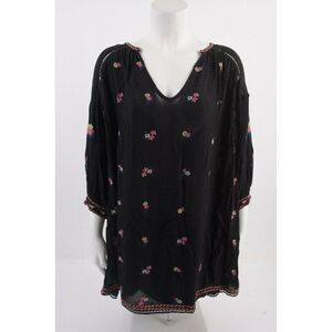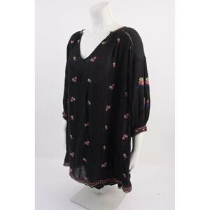Free People Womens Flowy Babydoll Dress XS Black Floral Embroidered