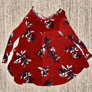 Free People Women's People Tree Swing Tunic Long Sleeve Shirt Red Floral Small