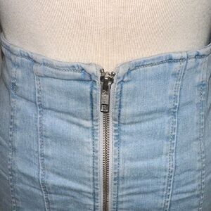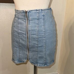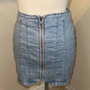So cute! Chic denim mini skirt with a front zipper. Perfect for casual outings. Excellent condition!