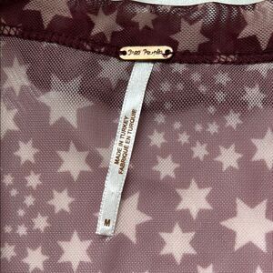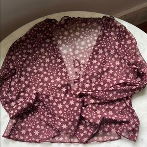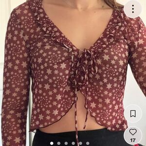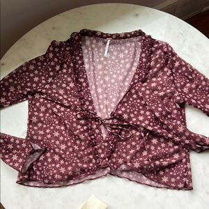 Free People burgundy STAR Tie Front Ruffled Sheer Blouse Medium