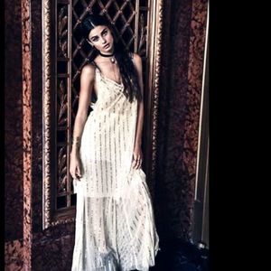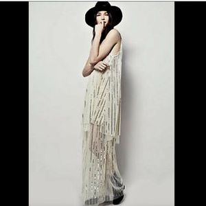 Free People NR ivory Mesh Gold Sequin Chiffon Maxi Split Skirt Wide Pant