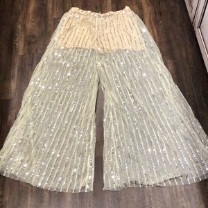 Free People ivory Mesh GoldSequin Skirt WidePant M