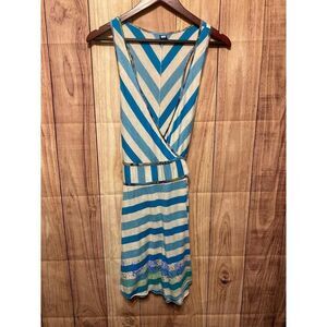 Free People size 12 Blue White Striped Racerback V-Neck wrap Dress Boho camo