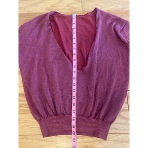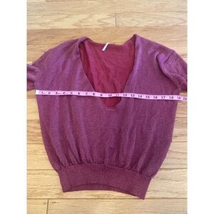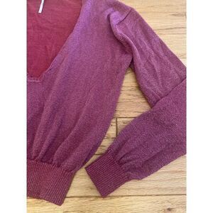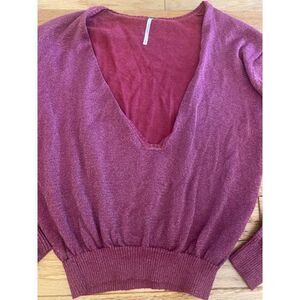 Free People, women's deep v-neck, sparkly rose thin, linen blend sweater size SM